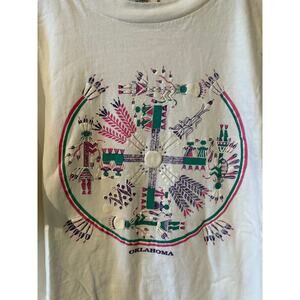 Vintage Single Stitch Oklahoma Puffy Graphic Design Native American T Shirt XL