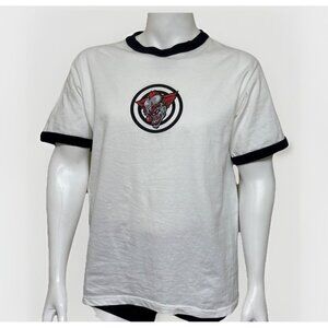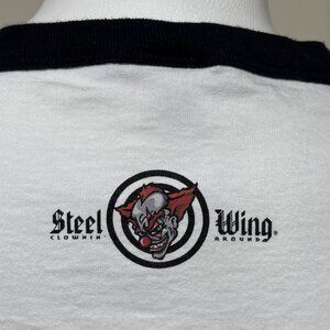 Vintage Single Stitch Ringer Shirt Mens L Clown Bullseye Steel Wing 80s Murina