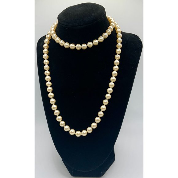 Vintage Single Strand 30” Faux Pearl Necklace German Silver Clasp