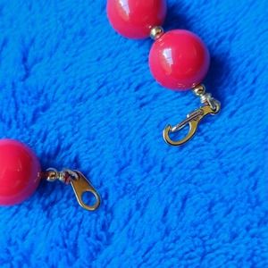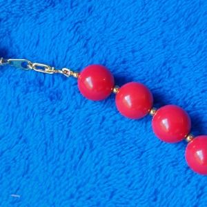 A simple single strand Beaded necklace with acrylic red beads with gold toned spacer beads.