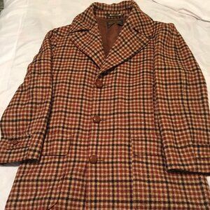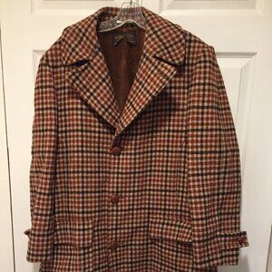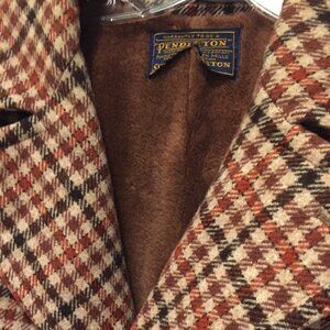 Vintage Sir Pendleton Coat Brown Plaid Mens M 44 Fur Lined Wool Long Heavy Jacket
