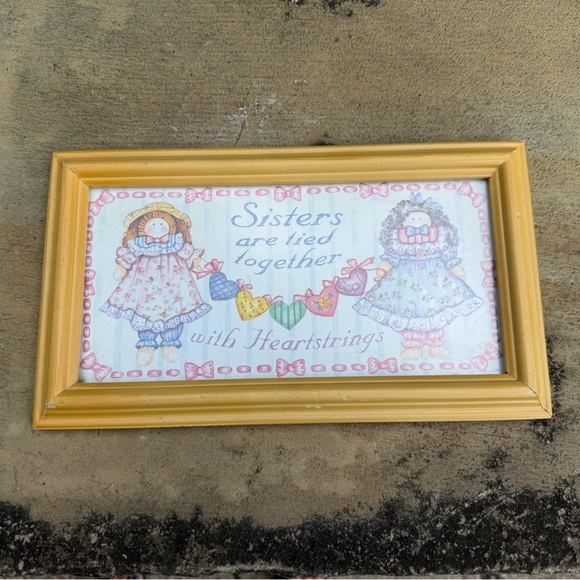 Vintage “Sisters are tied together with heartstrings” wall hanging decor