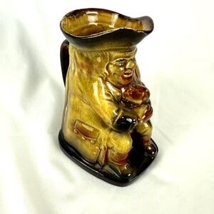 Vintage Sitting Lord Nelson Toby Jug Yellow Brown Glaze Holding Ale Handle