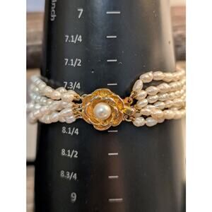 Vintage Six Strand Rice Pearl Floral Pearl Clasp Bracelet