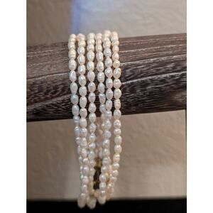 Vintage Six Strand Rice Pearl Floral Pearl Clasp Bracelet. Pre-owned, this bracelet is in excellent condition. There is the tiniest bit of wear on the back of the floral clasp section, but that is it. Gorgeous, elegant.