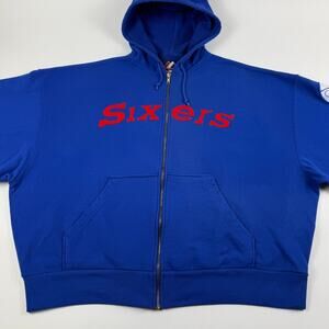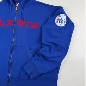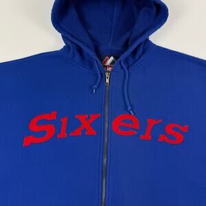 Vintage Sixers Philadelphia NBA Basketball Blue Zip Majestic Hoodie Size 2XL