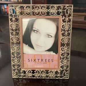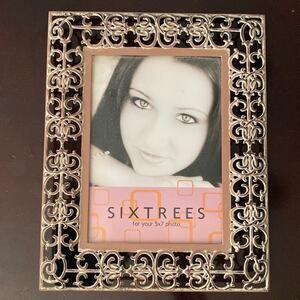 Vintage Sixtrees metal filigree open 5x7” photograph frame