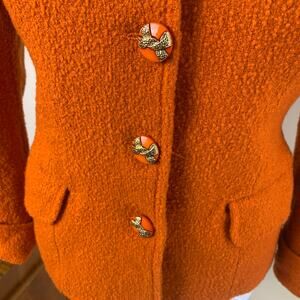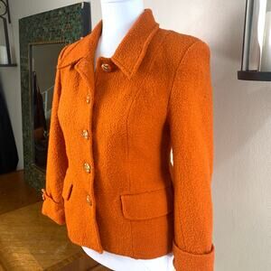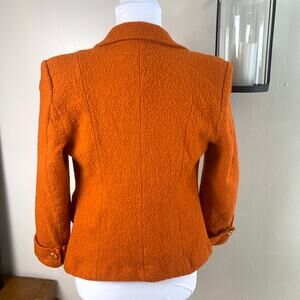 Vintage Size 10 Button Front Blazer Jacket Burnt Pumpkin Orange Boucle Fall