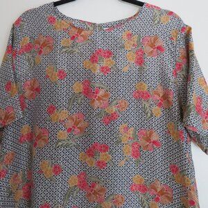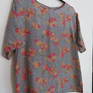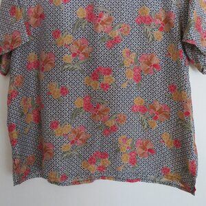 Vintage | Size 14 | 100% Silk Floral Boho Short Sleeve Blouse Top Shirt