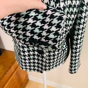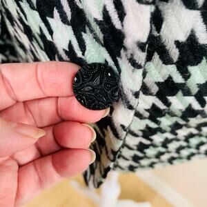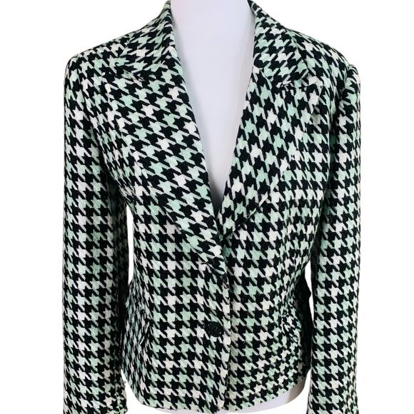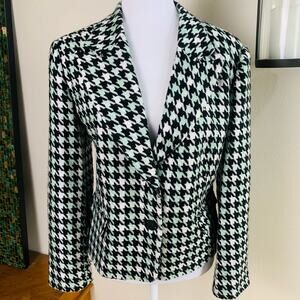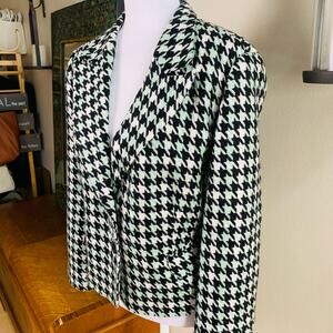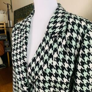 Vintage Size 14P Houndstooth Blazer Jacket Black Off White Mint Green Career