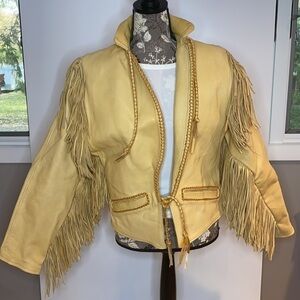 Vintage Size 6-8 Handmade Leather Butterscotch Western Jacket Coat with Fringe