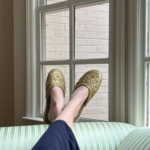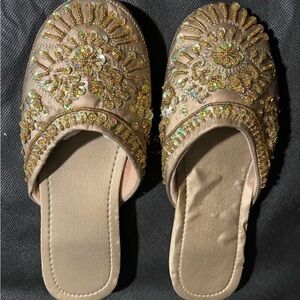 Vintage Size 8 House Shoes Slippers Sequined Puffy Tops Gold & Tan No Brand