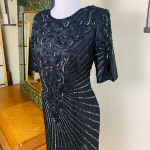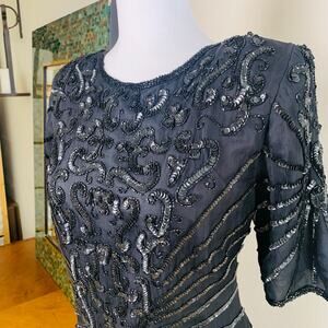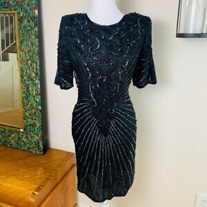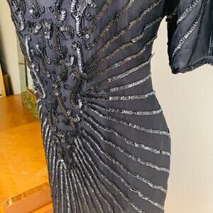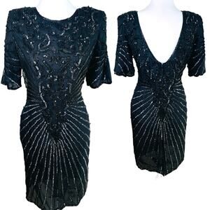 Vintage Styleworks Size 8 Silk Sequin Beaded Low Back Mini Dress in Black Cocktail