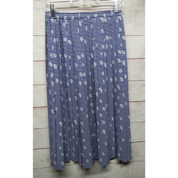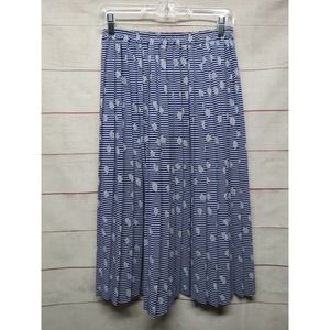 Vintage Size 9 Blue & White Striped Flower Pleated Skirt Elastic Waist Canada