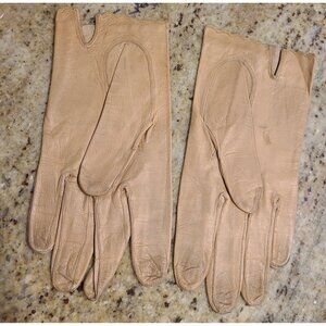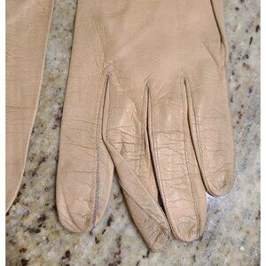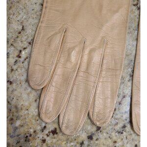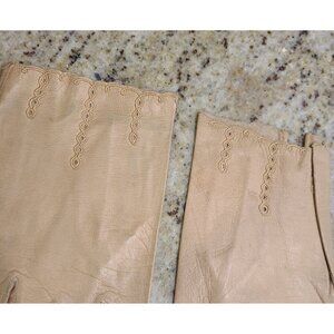 Vintage Size M Beige Kid Leather Formal 8" Gloves Eyelet Trellis Wrist