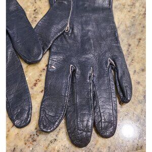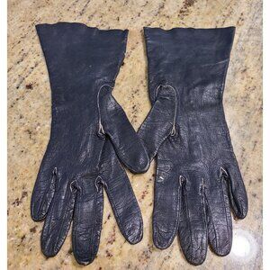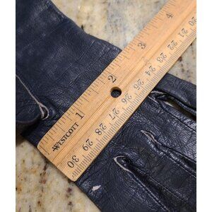 Vintage Size S 6 Black Leather Formal 10" Gloves Stitching Detail Geometric