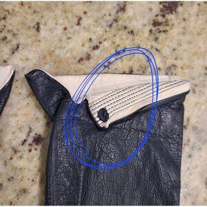 Vintage Size S Blue Leather 8" Gloves Nautical Look Fold over Wrist