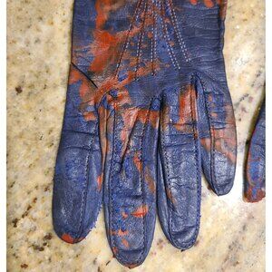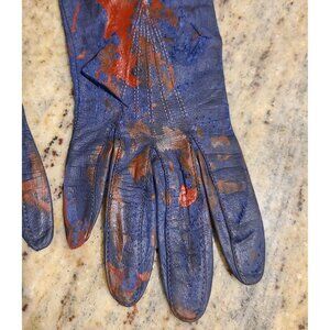 Vintage Size S Blue Leather Long Gloves Slashed Fake Bloody Slashed Zombie War Horror