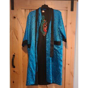 Vintage Size XL Pierre Cardin Silk Blend Embroidered Dragon Robe Reversible Belt
