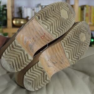 Vintage Skane Toffeln Swedish Brown Leather Wooden Clogs 39 - Cottagecore