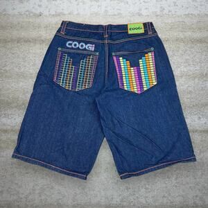 Vintage Skater Wide Leg Jean Shorts Coogi Dark Wash 15" Inseam Jorts Baggy Denim Made in USA Rap Style Y2K