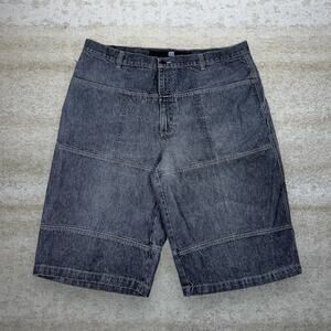 Vintage Skater Wide Leg Jean Shorts MFG Girbaud Dark Grey Wash Baggy Denim Y2K