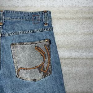 Vintage Skater Wide Leg Jeans Kani Medium Wash Baggy Denim Embroidered Y2K