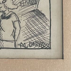Vintage Sketch Drawing Artwork Framed Signed Camp Woods Lake M.DREYFOSS 14x13
