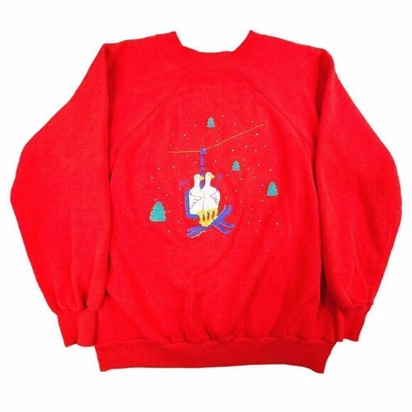 Vintage Ski Geese Sweatshirt Mens Size Small Red 80s Ski Lift Made In USA