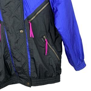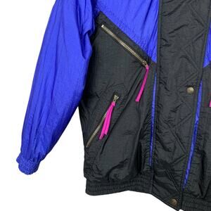 Vintage Ski Jacket Colorblock Black Purple 80s 90s Full Zip Pockets Women's M