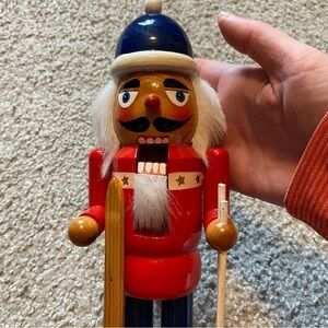 Vintage Ski Nutcracker Wooden Red Blue Christmas Decoration