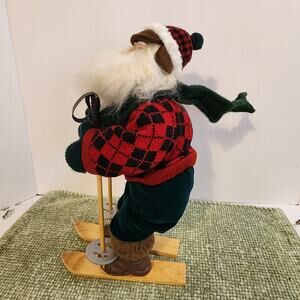 Vintage Skiing Santa Claus Figure Red Sweater Wood Skis 12" Christmas Decor