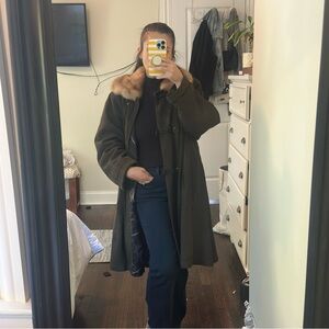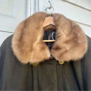 vintage leather coat, fur collar coat, Skin to Skin Liogas Group, olive green leather jacket, real leather winter coat, European vintage coat, statement outerwear