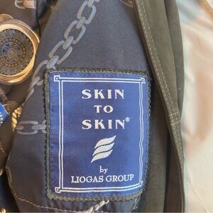 Vintage “Skin to Skin” by Liogas Group leather coat, EU size 44/46. 100% real leather outer with a silky patterned lining and plush fur collar. Features oversized buttons, toggle closures, and side pockets. Deep olive/army green tone gives it a timeless, classic look. Heavyweight and warm, perfect for winter outerwear with statement style. Rare European vintage find.