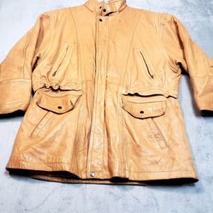 Vintage Skins by Tora Soft Leather Parka Utility Jacket mustard Size XL