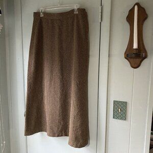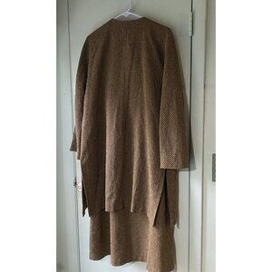 Vintage Pantsuit Marianne Novobatzky NY Designer Houndstooth Long Jacket Comfort...no size found.probably Large XLarge.....most items were tailored from this designer....see measurements for correct fit...brown black plaid rougher textured fabric....skirt is lined jacket is not....