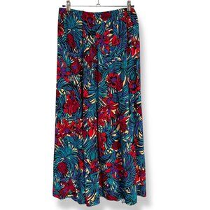 Vintage Skirt Tropical Floral Elastic Waistband Blue Red Eclectic Maximalist 80s