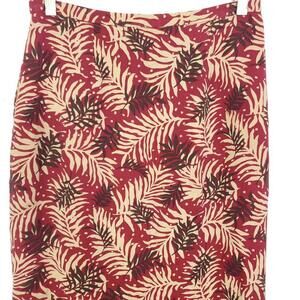 This vintage Tao skirt is a stunning women's maxi skirt in a rich red color with a floral pattern, perfect for a traditional and high-quality look. Made of silk and lined for added comfort, this skirt features a button closure and is ideal for occasions like weddings, parties, or workwear. With its long length and lightweight design, this skirt is perfect for summer, fall, or spring seasons, adding a touch of nature-inspired elegance to any wardrobe.