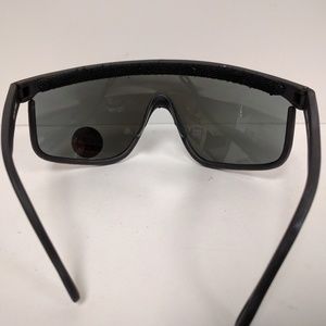 NWT Vintage 90's ski style framed bladed 1 pc lens wrap around sunglasses w/ black nylon frame w/ smoke iridium blue mirror polycarbonate lens