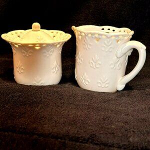 Vintage Skye McGhie Cream Lace Pattern, 2002 Fine Porcelain Sugar Bowl And Cream