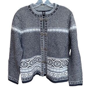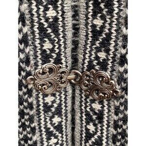vintage Skyr Nordic 100% wool Size Medium cardigan sweater pewter frog clasps fair isle