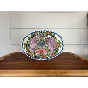 This listing is for an excellent condition, pre-owned Hand-Painted Skyros Designs Porcelain decorative plate with hanger attached. Measures approx. 12” L x 8.5” W x 1.25” H