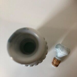 This vintage glass decanter boasts an opalescent milk glass finish, adding elegance to any collection. Features a cork stopper for secure closure, making it a refined choice for display or functional use.
