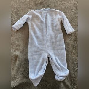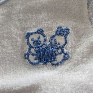 Adorable blue and white kids one piece. Embroidered with a bear and a bunny.