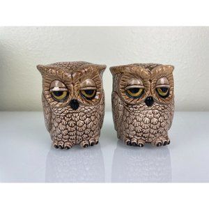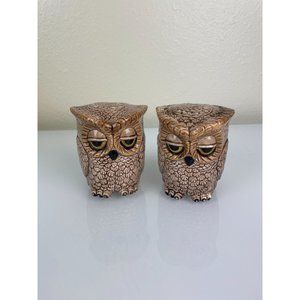 Vintage Sleepy Owl Double Sided Ceramic Salt & Pepper Shakers Large w/ Stoppers