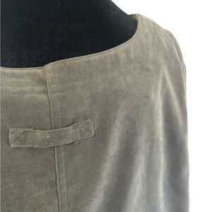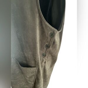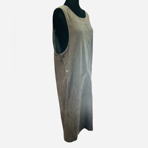 Vintage Sleeveless Jumper Dress Size Large Olive Green Brushed Faux Suede Pocket
