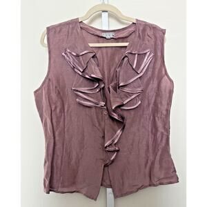 Vintage Sleeveless Silk Linen Button Up Ruffle Blouse Y2K XL Coquette Fairy Pink