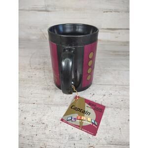 Used vintage condition with wear and age-related scuffing. Both pieces are made of plastic. Mini mug keychain appears to be missing a bottom piece that would have screwed in. Mug measures approximately 4" tall and 3 1/8" in diameter across upper rim. Keychain measures approximately 1.75" tall. See photos for more detail.