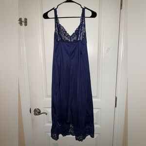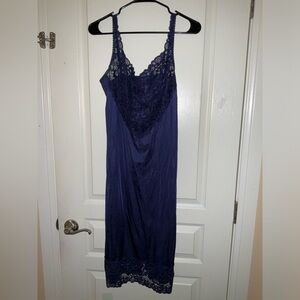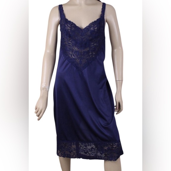 Vintage 1970s Vanity Fair Navy Blue Lace Trimmed Full Slip