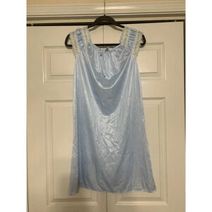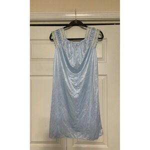 This vintage slip dress nightgown is a charming addition to any cottage core or fairy themed outfit. Made of 100% nylon, it is both comfortable and feminine, perfect for a night in. The dress features a slip-on style with a flattering fit and comes in a beautiful blue color.